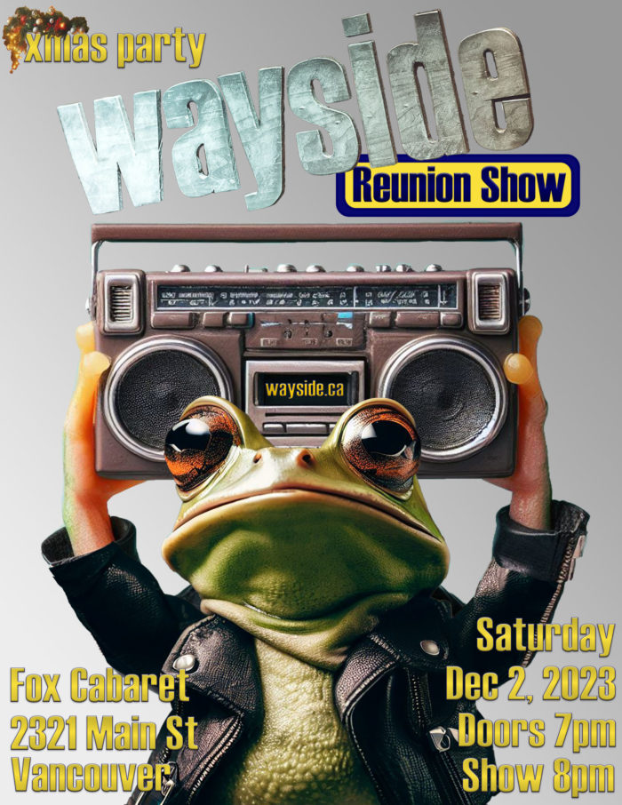 The rumours have been confirmed. Wayside will return to return to the stage on Saturday, December 2nd 2023 at The Fox Cabaret (2321 Main St). More details will be posted as the gig approaches. In the meantime, save the date and plan for a fun evening with Wayside.